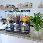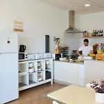 הוא כולל קומקום חשמלי, מקרר וכלי מטבח.